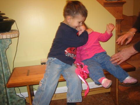 For the first hour together, Declan was vigilant about telling Livi that “You can’t push Quinny….she’s still a baby…..she doesn’t understand…..” and “Don’t throw the book at her, you can’t do that….” (she wasn’t doing any of these things, but he was the enforcer – can you tell he’s been told these things (once? twice? a million times?) before?