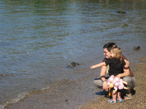 Checking out our new fish.